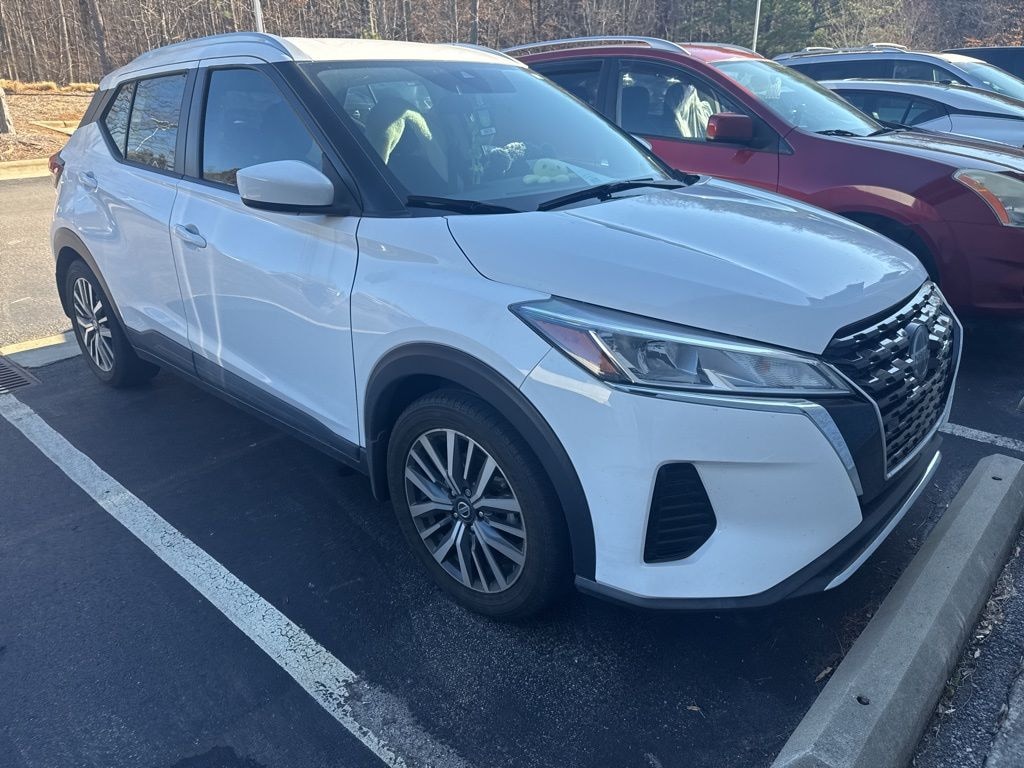 Check out all these great options 3.927 Axle Ratio, 4-Wheel Disc Brakes, 6 Speakers, ABS brakes, Air Conditioning, Alloy wheels, AM/FM radio: SiriusXM, Apple CarPlay/Android Auto, Auto High-beam Headlights, Automatic temperature control, Blind Spot Warning, Brake assist, Bumpers: body-color, Carpeted Floor Mats w/Cargo Mat, Cloth Seat Trim, Compass, Driver door bin, Driver vanity mirror, Dual front impact airbags, Dual front side impact airbags, Electronic Stability Control, Front anti-roll bar, Front Bucket Seats, Front Center Armrest, Front reading lights, Front wheel independent suspension, Fully automatic headlights, Heated door mirrors, Illuminated entry, Knee airbag, Low tire pressure warning, Occupant sensing airbag, Outside temperature display, Overhead airbag, Panic alarm, Passenger door bin, Passenger vanity mirror, Power door mirrors, Power steering, Power windows, Radio data system, Radio: AM/FM Audio System, Rear Parking Sensors, Rear reading lights, Rear side impact airbag, Rear window defroster, Rear window wiper, Remote keyless entry, Roof rack: rails only, Speed control, Splash Guards Grain (4 Piece), Split folding rear seat, Sport steering wheel, Steering wheel mounted audio controls, Tachometer, Telescoping steering wheel, Tilt steering wheel, Traction control, Trip computer, Variably intermittent wipers, and Wheels: 17" 5-Hole Alloy *** AVAILABLE AT FRED ANDERSON NISSAN OF RALEIGH. CALL US NOW 919-787-0254*** Nissan Certified. Kicks Fresh Powder SV FWD CVT with Xtronic 1.6L 4-Cylinder DOHC 16V