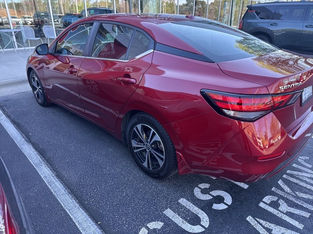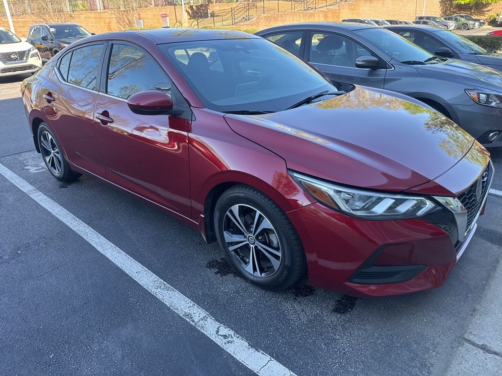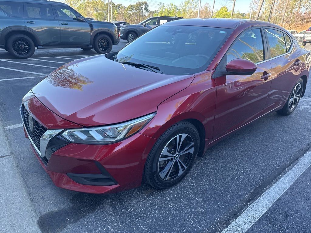 Check out all these great options 16" Alloy Wheels, 4-Wheel Disc Brakes, 6 Speakers, ABS brakes, Air Conditioning, Alloy wheels, AM/FM radio: SiriusXM, Auto High-beam Headlights, Automatic temperature control, Blind Spot Warning, Body Colored Splash Guards (4-Piece), Brake assist, Bumpers: body-color, Carpeted Floor Mats w/Trunk Mat, Clear Rear Bumper Protector, Delay-off headlights, Door Sill Plates, Driver door bin, Driver vanity mirror, Dual front impact airbags, Dual front side impact airbags, Electronic Stability Control, Four wheel independent suspension, Front anti-roll bar, Front Bucket Seats, Front Center Armrest, Front dual zone A/C, Front reading lights, Fully automatic headlights, Heated door mirrors, Illuminated entry, Knee airbag, Low tire pressure warning, NissanConnect featuring Apple CarPlay and Android Auto, Occupant sensing airbag, Outside temperature display, Overhead airbag, Overhead console, Panic alarm, Passenger door bin, Passenger vanity mirror, Power door mirrors, Power steering, Power windows, Radio data system, Radio: AM/FM w/RDS/MP3/Aux-In, Rear anti-roll bar, Rear Parking Sensors, Rear seat center armrest, Rear side impact airbag, Rear window defroster, Remote keyless entry, Security system, Speed control, Speed-sensing steering, Split folding rear seat, Steering wheel mounted audio controls, Tachometer, Telescoping steering wheel, Tilt steering wheel, Traction control, Trip computer, Upgraded Cloth Seat Trim, and Variably intermittent wipers *** AVAILABLE AT FRED ANDERSON NISSAN OF RALEIGH. CALL US NOW 919-787-0254*** Nissan Certified. Sentra Scarlet Ember Tintcoat SV FWD CVT with Xtronic 2.0L DOHC