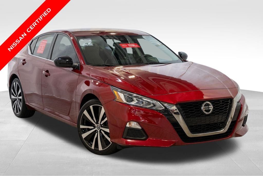 Check out all these great options 4-Wheel Disc Brakes, 6 Speakers, ABS brakes, Air Conditioning, Alloy wheels, AM/FM radio: SiriusXM, Auto High-beam Headlights, Blind Spot Warning, Body-Colored Splash Guards, Brake assist, Bumpers: body-color, Chrome Bumper Protector, Delay-off headlights, Driver door bin, Driver vanity mirror, Dual front impact airbags, Dual front side impact airbags, Electronic Stability Control, Four wheel independent suspension, Front anti-roll bar, Front Bucket Seats, Front Center Armrest, Front reading lights, Front Sport Bucket Seats, Fully automatic headlights, Illuminated entry, Knee airbag, Leather Shift Knob, Low tire pressure warning, NissanConnect featuring Apple CarPlay and Android Auto, Occupant sensing airbag, Outside temperature display, Overhead airbag, Overhead console, Panic alarm, Passenger door bin, Passenger vanity mirror, Power door mirrors, Power driver seat, Power steering, Power windows, Radio data system, Radio: AM/FM Audio System, Rear anti-roll bar, Rear Parking Sensors, Rear reading lights, Rear seat center armrest, Rear side impact airbag, Rear window defroster, Remote keyless entry, Security system, Speed control, Speed-sensing steering, Speed-Sensitive Wipers, Split folding rear seat, Sport Seat Trim, Sport steering wheel, SR Floor Mats/Trunk Mat/Hideaway Nets, Steering wheel mounted audio controls, Tachometer, Telescoping steering wheel, Tilt steering wheel, Traction control, Trip computer, Trunk Organizer Tray, Variably intermittent wipers, and Wheels: 19" Machined Alloy *** AVAILABLE AT FRED ANDERSON NISSAN OF RALEIGH. CALL US NOW 919-787-0254*** Nissan Certified. Altima Scarlet Ember Tintcoat 2.5 SR FWD CVT with Xtronic 2.5L 4-Cylinder DOHC 16V