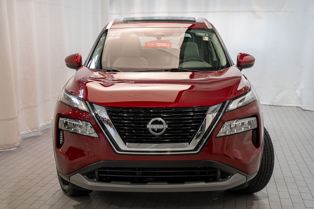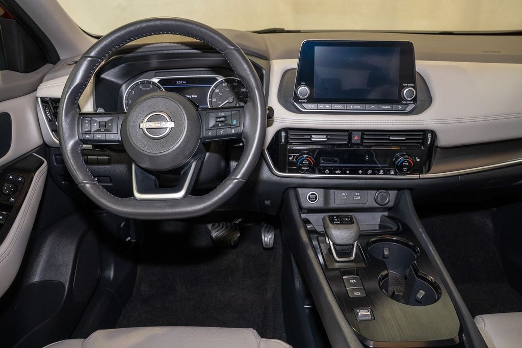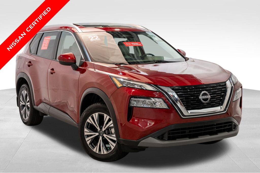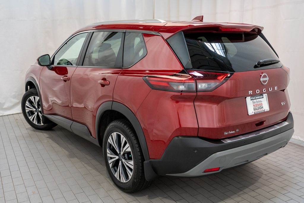 Check out all these great options SV Premium Package (Heated Driver & Front Passenger Seats, Heated Leather Wrapped Steering Wheel, Leatherette Door Trim Inserts w/Stitch, Power Liftgate, Power Panoramic Moonroof, PRIMATEX Leatherette Seat Trim, Rear Door Sunshades, Rear Personal Lights, and Silver Painted Roof Rails), 18" Aluminum Alloy Wheels, 4-Wheel Disc Brakes, 5.604 Axle Ratio, 6 Speakers, ABS brakes, Air Conditioning, Alloy wheels, AM/FM Radio, AM/FM radio: SiriusXM, Auto High-beam Headlights, Automatic temperature control, Black Splash Guards (Set of 4), Brake assist, Bumpers: body-color, Chrome Rear Bumper Protector, Cloth Seat Trim, Delay-off headlights, Driver door bin, Driver vanity mirror, Dual front impact airbags, Dual front side impact airbags, Electronic Stability Control, Emergency communication system: NissanConnect Services, First Aid Kit, Floor Mats w/1-Piece Cargo Area Protector, Four wheel independent suspension, Front anti-roll bar, Front Bucket Seats, Front Center Armrest, Front dual zone A/C, Front reading lights, Fully automatic headlights, Heated door mirrors, Illuminated entry, Knee airbag, Low tire pressure warning, NissanConnect featuring Apple CarPlay and Android Auto, Occupant sensing airbag, Outside temperature display, Overhead airbag, Overhead console, Panic alarm, Passenger door bin, Passenger vanity mirror, Power door mirrors, Power driver seat, Power steering, Power windows, Radio data system, Rear anti-roll bar, Rear Parking Sensors, Rear seat center armrest, Rear side impact airbag, Rear window defroster, Rear window wiper, Remote keyless entry, Retractable Cargo Cover, Security system, Speed control, Speed-Sensitive Wipers, Split folding rear seat, Spoiler, Steering wheel mounted audio controls, Tachometer, Telescoping steering wheel, Tilt steering wheel, Traction control, Trip computer, Turn signal indicator mirrors, and Variably intermittent wipers *** AVAILABLE AT FRED ANDERSON NISSAN OF RALEIGH. CALL US NOW 919-787-0254*** Nissan Certified. Rogue Scarlet Ember Tintcoat SV FWD CVT with Xtronic 1.5L I3 Turbocharged DOHC 12V LEV3-ULEV50 201hp