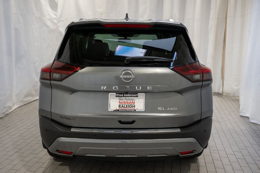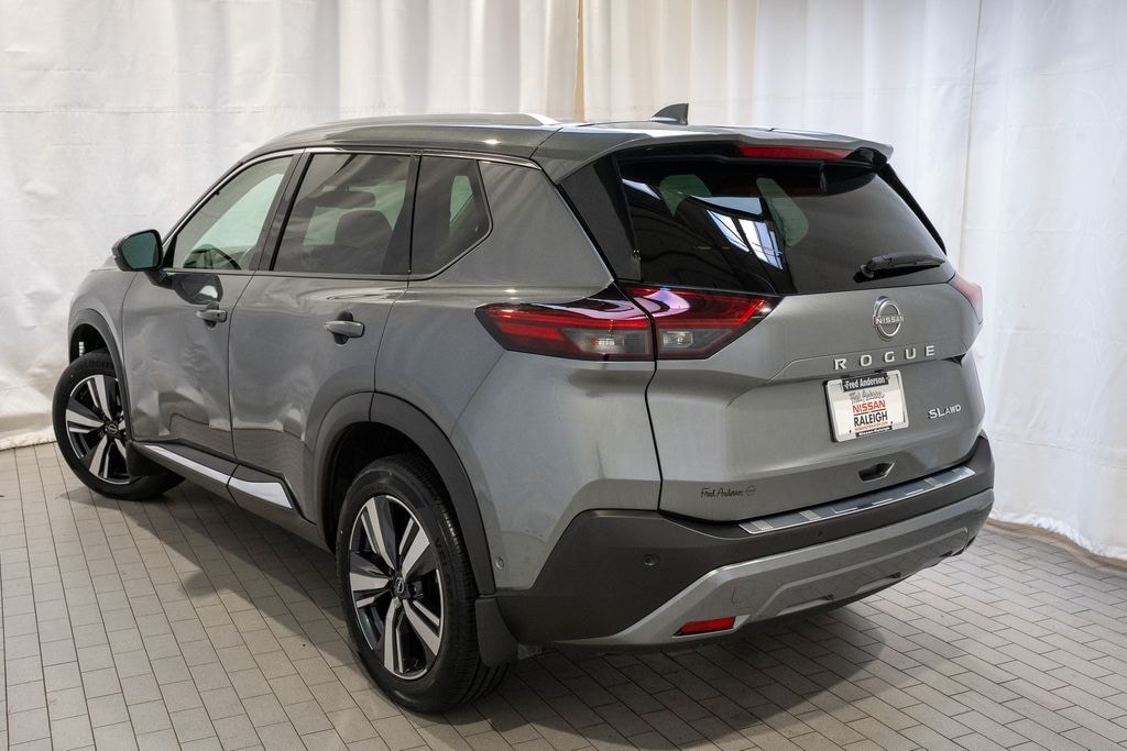 Check out all these great options SL Premium Package (Bose Premium Audio System, Front, Side & Rear Sonar, Motion Activated Power Liftgate, ProPILOT Assist w/Navi-link, Radio: AM/FM NissanConnect w/Navigation, Rear Door Sunshades, Traffic Sign Recognition, and Tri-Zone HVAC), Navigation System, 19" Aluminum Alloy Wheels, 4-Wheel Disc Brakes, 5.604 Axle Ratio, 6 Speakers, ABS brakes, Air Conditioning, Alloy wheels, AM/FM Radio, AM/FM radio: SiriusXM, Auto High-beam Headlights, Auto-dimming Rear-View mirror, Automatic temperature control, Black Splash Guards (Set of 4), Brake assist, Bumpers: body-color, Chrome Rear Bumper Protector, Delay-off headlights, Driver door bin, Driver vanity mirror, Dual front impact airbags, Dual front side impact airbags, Electronic Stability Control, Emergency communication system: NissanConnect Services, Floor Mats w/2-Piece Cargo Area Protector, Four wheel independent suspension, Front anti-roll bar, Front Bucket Seats, Front Center Armrest, Front dual zone A/C, Front reading lights, Fully automatic headlights, Heated door mirrors, Heated Front Bucket Seats, Heated front seats, Heated steering wheel, Illuminated entry, Knee airbag, Leather steering wheel, Leather-Appointed Seat Trim, Low tire pressure warning, Memory seat, NissanConnect featuring Apple CarPlay and Android Auto, Occupant sensing airbag, Outside temperature display, Overhead airbag, Overhead console, Panic alarm, Passenger door bin, Passenger vanity mirror, Power door mirrors, Power driver seat, Power Liftgate, Power moonroof, Power passenger seat, Power steering, Power windows, Radio data system, Rear anti-roll bar, Rear Parking Sensors, Rear reading lights, Rear seat center armrest, Rear side impact airbag, Rear window defroster, Rear window wiper, Remote keyless entry, Security system, Speed control, Speed-Sensitive Wipers, Split folding rear seat, Spoiler, Steering wheel mounted audio controls, Tachometer, Telescoping steering wheel, Tilt steering wheel, Traction control, Trip computer, Turn signal indicator mirrors, and Variably intermittent wipers *** AVAILABLE AT FRED ANDERSON NISSAN OF RALEIGH. CALL US NOW 919-787-0254*** Nissan Certified. Rogue Gun Metallic SL AWD CVT with Xtronic 1.5L I3 Turbocharged DOHC 12V LEV3-ULEV50 201hp