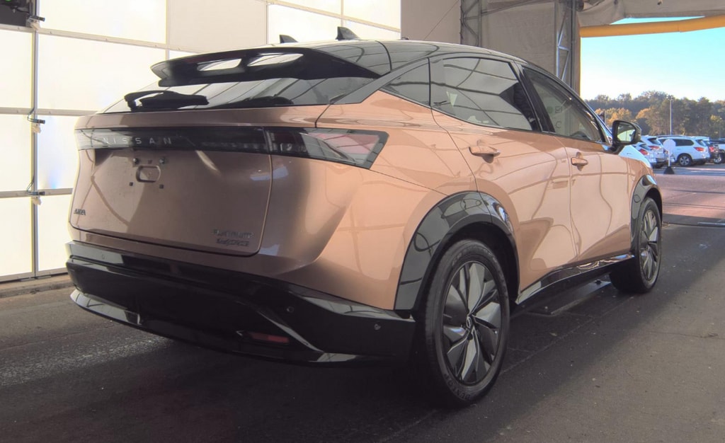 Check out all these great options 10 Speakers, 19" Alloy Wheels, 4-Wheel Disc Brakes, ABS brakes, Air Conditioning, Alloy wheels, AM/FM radio: SiriusXM, Auto High-beam Headlights, Auto-dimming Rear-View mirror, Automatic temperature control, Brake assist, Bumpers: body-color, Carpeted Floor Mats & First Aid Kit, Delay-off headlights, Driver door bin, Driver vanity mirror, Dual front impact airbags, Dual front side impact airbags, Electronic Stability Control, Emergency communication system: NissanConnect EV & Services, Four wheel independent suspension, Front anti-roll bar, Front Bucket Seats, Front Center Armrest, Front dual zone A/C, Front fog lights, Front reading lights, Garage door transmitter: HomeLink, Heads-Up Display, Heated & Cooled Front Bucket Seats, Heated door mirrors, Heated front seats, Heated rear seats, Heated steering wheel, Illuminated entry, Knee airbag, Leather steering wheel, Low tire pressure warning, Memory seat, NACS Charging Adapter, Nappa Leather Seating Surfaces, Navigation system: Nissan Door to Door Connected Navigation, Nissan USB Charging Cable Set, Occupant sensing airbag, Outside temperature display, Overhead airbag, Panic alarm, Passenger door bin, Passenger vanity mirror, Power door mirrors, Power driver seat, Power Liftgate, Power moonroof, Power passenger seat, Power steering, Power windows, Premium Paint w/Two-Tone, Radio: NissanConnect EV w/Navigation, Rain sensing wipers, Rear anti-roll bar, Rear reading lights, Rear seat center armrest, Rear side impact airbag, Rear window defroster, Rear window wiper, Remote keyless entry, Security system, Speed control, Speed-sensing steering, Speed-Sensitive Wipers, Split folding rear seat, Spoiler, Steering wheel memory, Steering wheel mounted audio controls, Telescoping steering wheel, Tilt steering wheel, Traction control, Trip computer, Turn signal indicator mirrors, Variably intermittent wipers, and Ventilated front seats *** AVAILABLE AT FRED ANDERSON NISSAN OF RALEIGH. CALL US NOW 919-787-0254*** Nissan Certified. Ariya Sunrise Copper Pearl/Black Diamond Pearl PLATINUM+ e-4ORCE AWD CVT Electric Motor