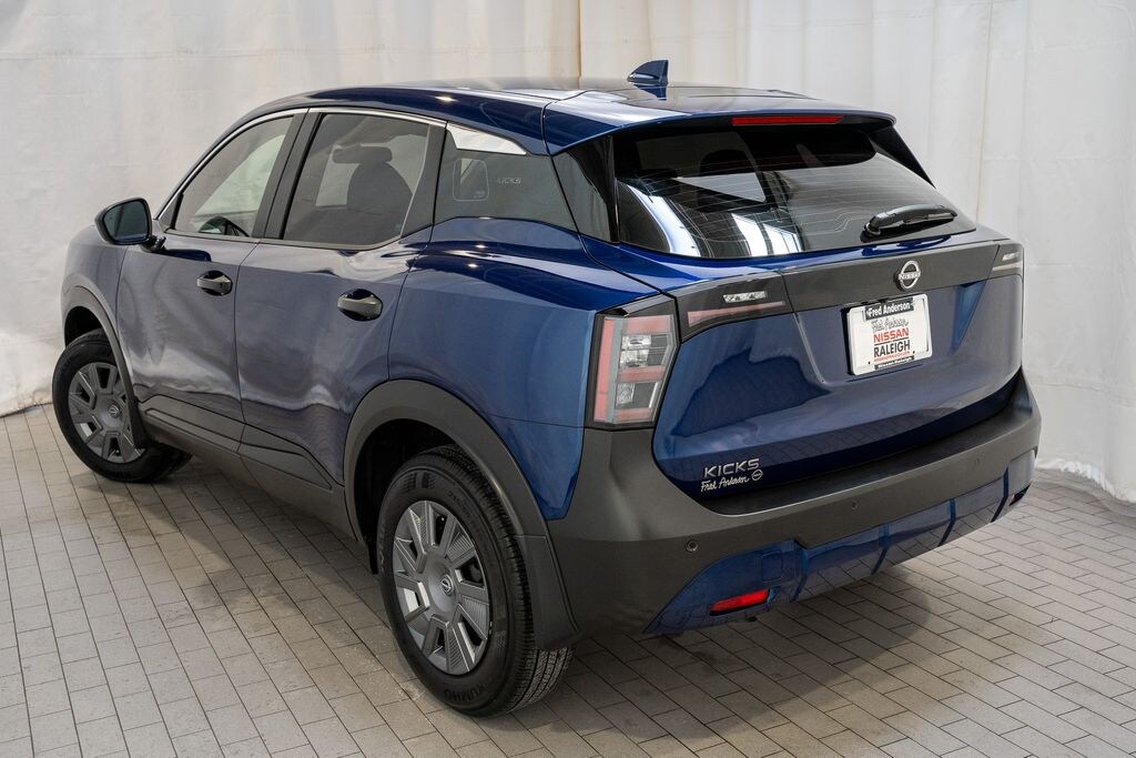 Check out all these great options 16" Steel Wheels w/Full Covers, 4 Speakers, 4-Wheel Disc Brakes, ABS brakes, Air Conditioning, AM/FM radio, Auto High-beam Headlights, Blind Spot Warning, Brake assist, Bumpers: body-color, Carpeted Floor Mats & Cargo Mat, Cloth Seat Trim, Driver door bin, Driver vanity mirror, Driver's Seat Mounted Armrest, Dual front impact airbags, Dual front side impact airbags, Electronic Stability Control, Front anti-roll bar, Front Bucket Seats, Front reading lights, Front wheel independent suspension, Fully automatic headlights, Illuminated entry, Knee airbag, Low tire pressure warning, Occupant sensing airbag, Outside temperature display, Overhead airbag, Panic alarm, Passenger door bin, Passenger vanity mirror, Power door mirrors, Power steering, Power windows, Radio data system, Radio: AM/FM Audio System, Rear anti-roll bar, Rear Parking Sensors, Rear reading lights, Rear side impact airbag, Rear window defroster, Rear window wiper, Remote keyless entry, Security system, Speed control, Speed-sensing steering, Splash Guards, Split folding rear seat, Spoiler, Sport steering wheel, Steering wheel mounted audio controls, Tachometer, Telescoping steering wheel, Tilt steering wheel, Traction control, Trip computer, and Variably intermittent wipers *** AVAILABLE AT FRED ANDERSON NISSAN OF RALEIGH. CALL US NOW 919-787-0254*** Nissan Certified. Kicks Deep Blue Pearl S FWD CVT with Xtronic 2.0L DOHC