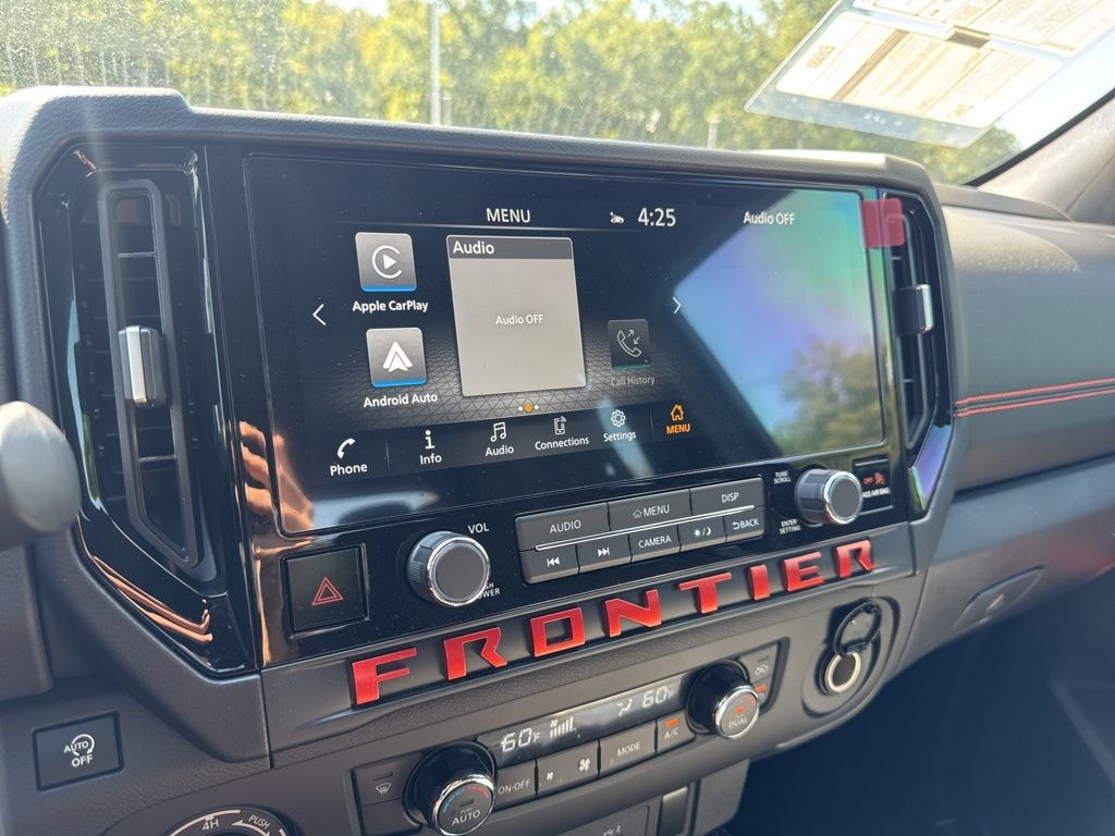 Located At The New Fred Anderson Nissan Of Raleigh On Glenwood Avenue! Right Next To The Angus Barn! $6,027 off MSRP! Priced below KBB Fair Purchase Price! Every new Nissan comes with The Family Plan including a 3 day Peace Of Mind Exchange Option, Lifetime Oil Changes, Loaner Cars, Loyalty Discounts and more with no additional charge at Fred Anderson Nissan of Raleigh. Check out all these great options 17" Painted Alloy Wheels, 3.692 Axle Ratio, 4-Wheel Disc Brakes, 6 Speakers, ABS brakes, Air Conditioning, Alloy wheels, AM/FM radio: SiriusXM, Anti-whiplash front head restraints, Auto High-beam Headlights, Automatic temperature control, Blind Spot Warning, Brake assist, Bumpers: body-color, Delay-off headlights, Driver door bin, Driver vanity mirror, Drop-In Bed Liner & Bumper Step, Dual front impact airbags, Dual front side impact airbags, Electronic Stability Control, Electronic Tailgate Lock, Emergency communication system, Essentials Kit, Front anti-roll bar, Front Bucket Seats, Front Center Armrest, Front dual zone A/C, Front fog lights, Front reading lights, Front wheel independent suspension, Fully automatic headlights, Illuminated entry, Knee airbag, Leather Shift Knob, Leather steering wheel, Low tire pressure warning, Mud Flap Accessory, Occupant sensing airbag, Overhead airbag, Overhead console, Panic alarm, Passenger door bin, Passenger vanity mirror, Power door mirrors, Power driver seat, Power passenger seat, Power steering, Power windows, Premium Paint, PRO Embroidered Premium Cloth Seat Trim, Radio data system, Radio: SXM/AM/FM/AUX/USB Audio System, Rear anti-roll bar, Rear seat center armrest, Rear side impact airbag, Rear step bumper, Remote Engine Starter, Remote Engine Starter Accessory, Remote keyless entry, Security system, Speed control, Speed-sensing steering, Split folding rear seat, Steering wheel mounted audio controls, Tachometer, Telescoping steering wheel, Tilt steering wheel, Traction control, Trip computer, Variably intermittent wipers, Voltmeter, and Wireless Apple CarPlay/Wireless Android Auto. 2025 4D Crew Cab Nissan Frontier Afterburn Orange PRO-4X 4WD 9-Speed Automatic with Overdrive 3.8L DI DOHC 24V V6