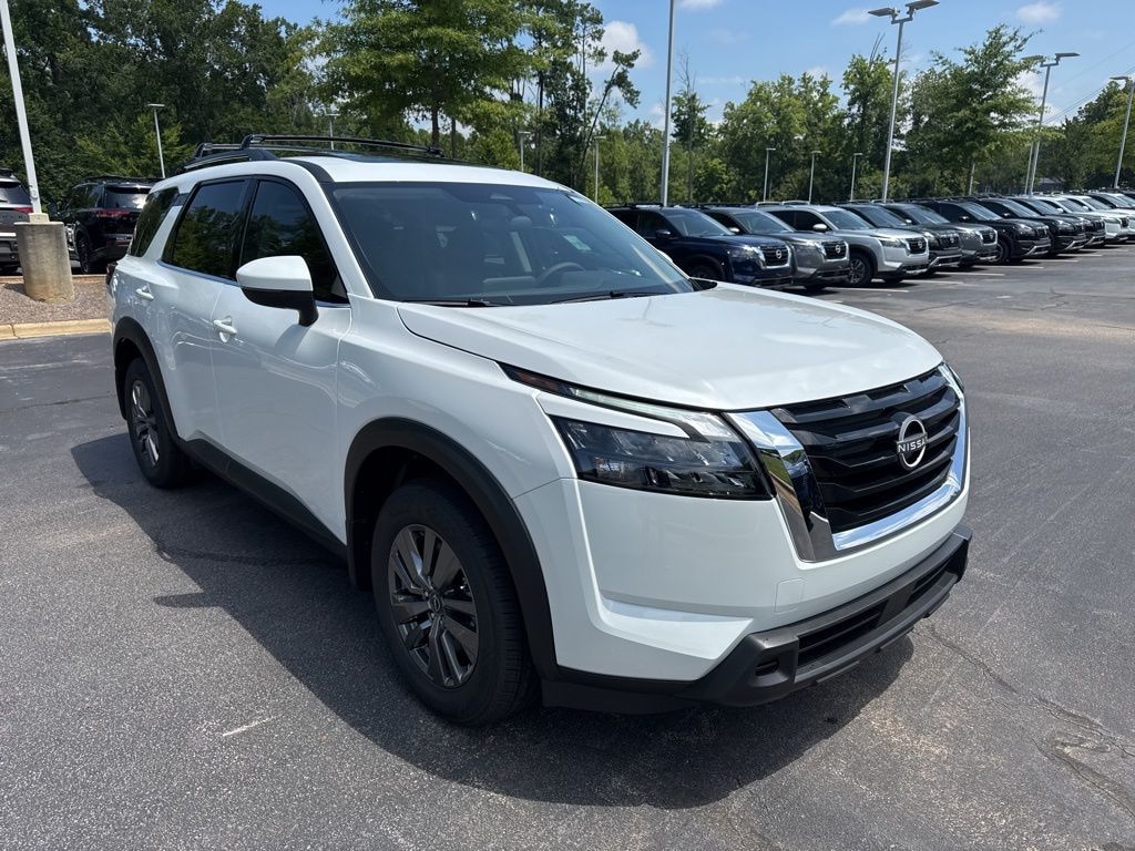 Located At The New Fred Anderson Nissan Of Raleigh On Glenwood Avenue! Right Next To The Angus Barn! $7,458 off MSRP! Priced below KBB Fair Purchase Price! Every new Nissan comes with The Family Plan including a 3 day Peace Of Mind Exchange Option, Lifetime Oil Changes, Loaner Cars, Loyalty Discounts and more with no additional charge at Fred Anderson Nissan of Raleigh. Check out all these great options SV Premium Package (2nd-Row Captain Chairs, 2nd-Row Rear Headrest, Panoramic Moonroof, and Tow Hitch Receiver & Harness), 3rd row seats: bench, 4-Wheel Disc Brakes, 6 Speakers, ABS brakes, Air Conditioning, Alloy wheels, AM/FM radio: SiriusXM, Auto High-beam Headlights, Automatic temperature control, Black Splash Guards (Set of 4), Brake assist, Bumpers: body-color, Captain's Chairs Carpeted Floor Mats (Set of 4), Cloth Seating Surfaces, Cross Bars, Delay-off headlights, Driver door bin, Driver vanity mirror, Dual front impact airbags, Dual front side impact airbags, Electronic Stability Control, Emergency communication system, Four wheel independent suspension, Front anti-roll bar, Front Bucket Seats, Front Center Armrest, Front dual zone A/C, Front reading lights, Fully automatic headlights, Heated door mirrors, Heated Front Bucket Seats, Heated front seats, Illuminated entry, Knee airbag, Leather steering wheel, Low tire pressure warning, Nissan USB Charging Cable Set, NissanConnect featuring Apple CarPlay and Android Auto, Occupant sensing airbag, Outside temperature display, Overhead airbag, Overhead console, Panic alarm, Passenger door bin, Passenger vanity mirror, Power door mirrors, Power driver seat, Power Liftgate, Power steering, Power windows, Premium Paint, Radio data system, Radio: AM/FM Audio System w/NissanConnect, Rear air conditioning, Rear anti-roll bar, Rear Parking Sensors, Rear reading lights, Rear seat center armrest, Rear side impact airbag, Rear window defroster, Rear window wiper, Reclining 3rd row seat, Remote keyless entry, Security system, Speed control, Speed-sensing steering, Split folding rear seat, Spoiler, Steering wheel mounted audio controls, Tachometer, Telescoping steering wheel, Tilt steering wheel, Traction control, Trip computer, Turn signal indicator mirrors, Variably intermittent wipers, and Wheels: 18" x 8J Painted Alloy. 2025 4D Sport Utility Nissan Pathfinder Everest White Pearl Tricoat SV FWD 9-Speed Automatic 3.5L V6 DOHC