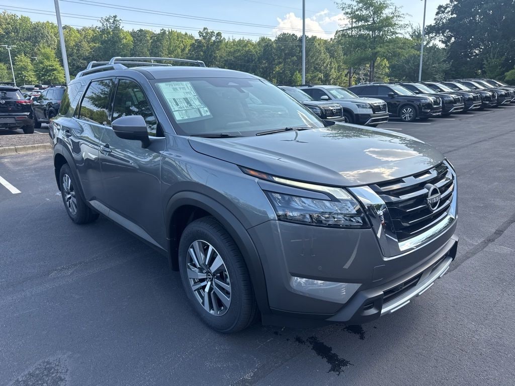 $2,507 off MSRP! Every new Nissan comes with The Family Plan including a 3 day Peace Of Mind Exchange Option, Lifetime Oil Changes, Loaner Cars, Loyalty Discounts and more with no additional charge at Fred Anderson Nissan of Raleigh. Check out all these great options Cargo Package (Cargo Area Protector, Cargo Net, and First Aid), 3rd row seats: bench, 4-Wheel Disc Brakes, 6 Speakers, ABS brakes, Air Conditioning, Alloy wheels, AM/FM radio: SiriusXM, Auto High-beam Headlights, Auto-dimming Rear-View mirror, Automatic temperature control, Bench Seat Carpeted Floor Mats (Set of 4), Black Splash Guards (Set of 4), Bose Premium Audio System, Brake assist, Bumpers: body-color, Cross Bars, Delay-off headlights, Driver door bin, Driver vanity mirror, Dual front impact airbags, Dual front side impact airbags, Electronic Stability Control, Emergency communication system, Exterior Parking Camera Rear, Four wheel independent suspension, Front anti-roll bar, Front Bucket Seats, Front Center Armrest, Front dual zone A/C, Front reading lights, Fully automatic headlights, Garage door transmitter: HomeLink, Heated door mirrors, Heated Front Bucket Seats, Heated front seats, Heated steering wheel, Illuminated entry, Knee airbag, Leather steering wheel, Leather-Appointed Seating Surfaces, Low tire pressure warning, Navigation system: NissanConnect with Navigation and Services, NissanConnect featuring Apple CarPlay and Android Auto, NissanConnect w/Navigation & Services, Occupant sensing airbag, Outside temperature display, Overhead airbag, Overhead console, Panic alarm, Passenger door bin, Passenger vanity mirror, Power door mirrors, Power driver seat, Power Liftgate, Power passenger seat, Power steering, Power windows, Radio data system, Radio: AM/FM Audio System, Rear air conditioning, Rear anti-roll bar, Rear reading lights, Rear seat center armrest, Rear side impact airbag, Rear window defroster, Rear window wiper, Reclining 3rd row seat, Remote keyless entry, Security system, Speed control, Speed-sensing steering, Split folding rear seat, Spoiler, Steering wheel mounted audio controls, Tachometer, Telescoping steering wheel, Tilt steering wheel, Traction control, Trip computer, Turn signal indicator mirrors, Variably intermittent wipers, and Wheels: 18" x 8J Machined Alloy. 2025 4D Sport Utility Nissan Pathfinder Gun Metallic SL 4WD 9-Speed Automatic 3.5L V6 DOHC