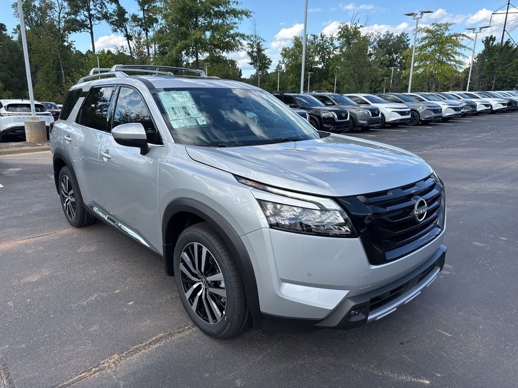 Located At The New Fred Anderson Nissan Of Raleigh On Glenwood Avenue! Right Next To The Angus Barn! $7,997 off MSRP! Priced below KBB Fair Purchase Price! Every new Nissan comes with The Family Plan including a 3 day Peace Of Mind Exchange Option, Lifetime Oil Changes, Loaner Cars, Loyalty Discounts and more with no additional charge at Fred Anderson Nissan of Raleigh. Check out all these great options Black Appearance Package (Black Grille and Black Liftgate Emblems), Cargo Package (Cargo Area Protector, Cargo Net, and First Aid), 13 Speakers, 3rd row seats: bench, 4-Wheel Disc Brakes, ABS brakes, Air Conditioning, Alloy wheels, AM/FM radio: SiriusXM, Auto High-beam Headlights, Auto tilt-away steering wheel, Auto-dimming Rear-View mirror, Automatic temperature control, Bench Seat Carpeted Floor Mats (Set of 4), Black Splash Guards (Set of 4), Bodyside moldings, Bose Premium Audio System, Brake assist, Bumpers: body-color, Climate Controlled Front Bucket Seats, Cross Bars, Delay-off headlights, Driver door bin, Driver vanity mirror, Dual front impact airbags, Dual front side impact airbags, Electronic Stability Control, Emergency communication system, Exterior Parking Camera Rear, Four wheel independent suspension, Front anti-roll bar, Front Bucket Seats, Front Center Armrest, Front dual zone A/C, Front reading lights, Fully automatic headlights, Garage door transmitter: HomeLink, Heads-Up Display, Heated door mirrors, Heated front seats, Heated rear seats, Heated steering wheel, Illuminated entry, Knee airbag, Leather steering wheel, LED Fog Lamps, Low tire pressure warning, Memory seat, Navigation system: NissanConnect with Navigation and Services, Nissan USB Charging Cable Set, NissanConnect featuring Apple CarPlay and Android Auto, NissanConnect w/Navigation & Services, Occupant sensing airbag, Outside temperature display, Overhead airbag, Overhead console, Panic alarm, Passenger door bin, Passenger vanity mirror, Power door mirrors, Power driver seat, Power Liftgate, Power moonroof, Power passenger seat, Power steering, Power windows, Radio data system, Radio: AM/FM Audio System, Rain sensing wipers, Rear air conditioning, Rear anti-roll bar, Rear reading lights, Rear seat center armrest, Rear side impact airbag, Rear window defroster, Rear window wiper, Reclining 3rd row seat, Remote keyless entry, Security system, Semi-Aniline Leather-Appointed Seating Surfaces, Speed control, Speed-sensing steering, Speed-Sensitive Wipers, Split folding rear seat, Spoiler, Steering wheel memory, Steering wheel mounted audio controls, Tachometer, Telescoping steering wheel, Tilt steering wheel, Traction control, Trip computer, Turn signal indicator mirrors, Variably intermittent wipers, Ventilated front seats, and Wheels: 20" x 8J Machined Alloy. 2025 4D Sport Utility Nissan Pathfinder Brilliant Silver Metallic Platinum 4WD 9-Speed Automatic 3.5L V6 DOHC