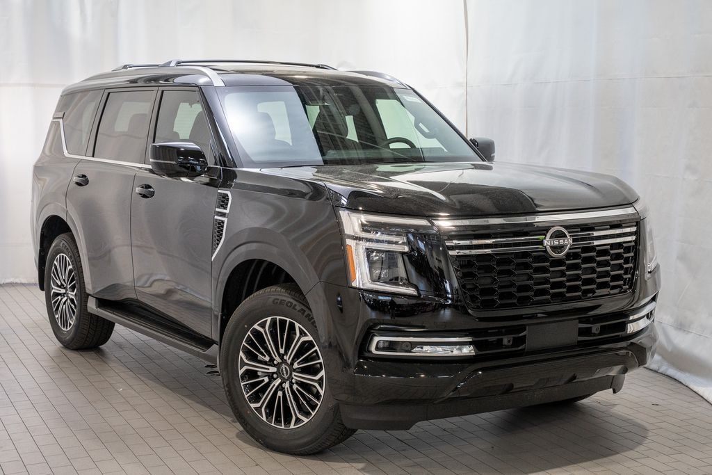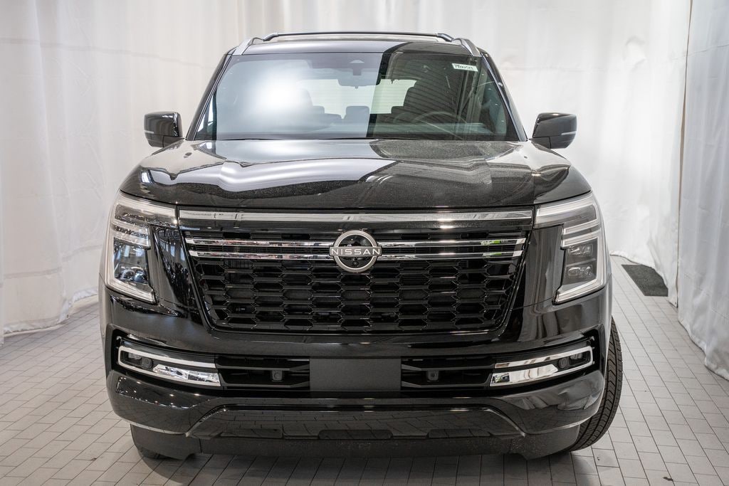 Located At The New Fred Anderson Nissan Of Raleigh On Glenwood Avenue! Right Next To The Angus Barn! $1,560 off MSRP! Every new Nissan comes with The Family Plan including a 3 day Peace Of Mind Exchange Option, Lifetime Oil Changes, Loaner Cars, Loyalty Discounts and more with no additional charge at Fred Anderson Nissan of Raleigh. Check out all these great options 12 Speakers, 3rd row seats: split-bench, 4-Wheel Disc Brakes, ABS brakes, Air Conditioning, Alloy wheels, AM/FM radio: SiriusXM w/360L, Anti-whiplash front head restraints, Apple CarPlay/Android Auto, Auto High-beam Headlights, Auto tilt-away steering wheel, Auto-dimming door mirrors, Auto-dimming Rear-View mirror, Auto-leveling suspension, Automatic temperature control, Brake assist, Bumpers: body-color, Carpeted Floor Mats with Captain Chairs, Center Front Spoiler, Climate Controlled Heated and Ventilated Front Seats, Compass, Cross Bars, Delay-off headlights, Driver door bin, Driver vanity mirror, Dual front impact airbags, Dual front side impact airbags, Electronic Stability Control, Emergency communication system: NissanConnect Services, Four wheel independent suspension, Front anti-roll bar, Front Bucket Seats, Front Center Armrest, Front dual zone A/C, Front fog lights, Front reading lights, Fully automatic headlights, Garage door transmitter: HomeLink, Genuine wood dashboard insert, Heated door mirrors, Heated front seats, Heated rear seats, Heated steering wheel, HVAC memory, Illuminated entry, Illuminated Kick Plates, Knee airbag, Leather steering wheel, Low tire pressure warning, Memory seat, Navigation system: Google Maps, Occupant sensing airbag, Outside temperature display, Overhead airbag, Overhead console, Panic alarm, Passenger door bin, Passenger vanity mirror, Power door mirrors, Power driver seat, Power Liftgate, Power moonroof, Power passenger seat, Power steering, Power windows, Quilted Leather Seat Trim, Radio: NissanConnect with SiriusXM 360L, Rain sensing wipers, Rear air conditioning, Rear anti-roll bar, Rear Bumper Protector, Rear reading lights, Rear window defroster, Rear window wiper, Reclining 3rd row seat, Remote keyless entry, Security system, Speed control, Speed-sensing steering, Speed-Sensitive Wipers, Splash Guards, Split folding rear seat, Spoiler, Steering wheel memory, Steering wheel mounted audio controls, Tachometer, Telescoping steering wheel, Tilt steering wheel, Traction control, Trip computer, Turn signal indicator mirrors, Variably intermittent wipers, Ventilated front seats, Voltmeter, and Wheels: 20" x 8.5J Machined and Painted Alloy. 2026 4D Sport Utility Nissan Armada Super Black Platinum 4WD 9-Speed Automatic 3.5L DOHC