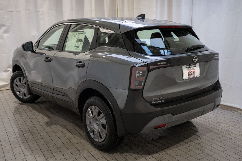 Located At The New Fred Anderson Nissan Of Raleigh On Glenwood Avenue! Right Next To The Angus Barn! Every new Nissan comes with The Family Plan including a 3 day Peace Of Mind Exchange Option, Lifetime Oil Changes, Loaner Cars, Loyalty Discounts and more with no additional charge at Fred Anderson Nissan of Raleigh. Check out all these great options 4 Speakers, 4-Wheel Disc Brakes, ABS brakes, Air Conditioning, AM/FM radio, Auto High-beam Headlights, Blind Spot Warning, Brake assist, Bumpers: body-color, Carpeted Floor Mats and Cargo Mat, Cloth Seat Trim, Driver door bin, Driver vanity mirror, Driver's Seat Mounted Armrest, Dual front impact airbags, Dual front side impact airbags, Electronic Stability Control, Emergency communication system, Exterior Parking Camera Rear, Front anti-roll bar, Front Bucket Seats, Front reading lights, Front wheel independent suspension, Fully automatic headlights, Illuminated entry, Knee airbag, Low tire pressure warning, NissanConnect featuring Apple CarPlay and Android Auto, Occupant sensing airbag, Outside temperature display, Overhead airbag, Panic alarm, Passenger door bin, Passenger vanity mirror, Power door mirrors, Power steering, Power windows, Radio data system, Radio: AM/FM/SiriusXM Audio System, Rear anti-roll bar, Rear reading lights, Rear side impact airbag, Rear window defroster, Rear window wiper, Remote keyless entry, Security system, Speed control, Speed-sensing steering, Splash Guards, Split folding rear seat, Spoiler, Sport steering wheel, Steering wheel mounted audio controls, Tachometer, Telescoping steering wheel, Tilt steering wheel, Traction control, Trip computer, Variably intermittent wipers, and Wheels: 16" Steel with Full Covers. 2026 4D Sport Utility Nissan Kicks Gun Metallic S FWD CVT with Xtronic 2.0L DOHC