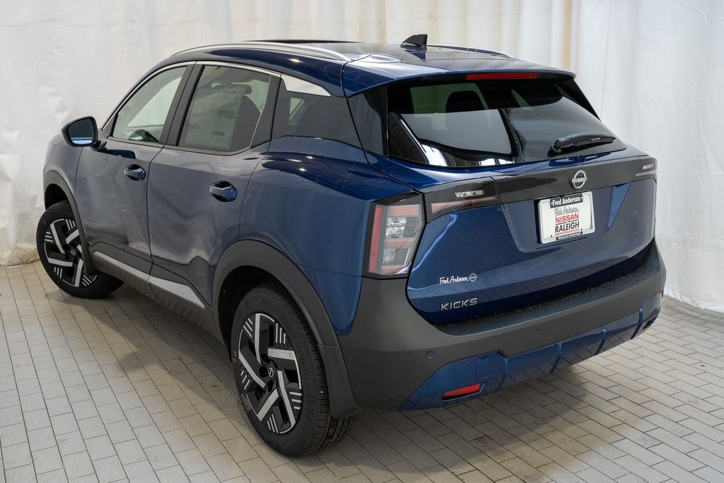 Located At The New Fred Anderson Nissan Of Raleigh On Glenwood Avenue! Right Next To The Angus Barn! $1,647 off MSRP! Every new Nissan comes with The Family Plan including a 3 day Peace Of Mind Exchange Option, Lifetime Oil Changes, Loaner Cars, Loyalty Discounts and more with no additional charge at Fred Anderson Nissan of Raleigh. Check out all these great options Cold Weather Package (Heated Front Seats, Heated Mirrors, and Rear Floor Heater Ducts), SV Premium Package (Illuminated Driver and Passenger Sun Visors, Panoramic Moonroof, and Sunglass Holder), 4 Speakers, 4-Wheel Disc Brakes, ABS brakes, Air Conditioning, AM/FM radio, Auto High-beam Headlights, Automatic temperature control, Blind Spot Warning, Brake assist, Bumpers: body-color, Carpeted Floor Mats and Underfloor Protector, Cloth Seat Trim, Driver door bin, Driver vanity mirror, Dual front impact airbags, Dual front side impact airbags, Electronic Stability Control, Emergency communication system, Exterior Parking Camera Rear, Front anti-roll bar, Front Bucket Seats, Front Center Armrest, Front reading lights, Front wheel independent suspension, Fully automatic headlights, Illuminated entry, Knee airbag, Low tire pressure warning, NissanConnect featuring Apple CarPlay and Android Auto, Occupant sensing airbag, Outside temperature display, Overhead airbag, Panic alarm, Passenger door bin, Passenger vanity mirror, Power door mirrors, Power steering, Power windows, Radio data system, Radio: AM/FM/SiriusXM Audio System, Rear anti-roll bar, Rear reading lights, Rear side impact airbag, Rear window defroster, Rear window wiper, Remote keyless entry, Security system, Speed control, Speed-sensing steering, Splash Guards, Split folding rear seat, Spoiler, Sport steering wheel, Steering wheel mounted audio controls, Tachometer, Telescoping steering wheel, Tilt steering wheel, Traction control, Trip computer, Variably intermittent wipers, and Wheels: 17" Steel Flex with Full Covers. 2026 4D Sport Utility Nissan Kicks Deep Blue Pearl SV FWD CVT with Xtronic 2.0L DOHC