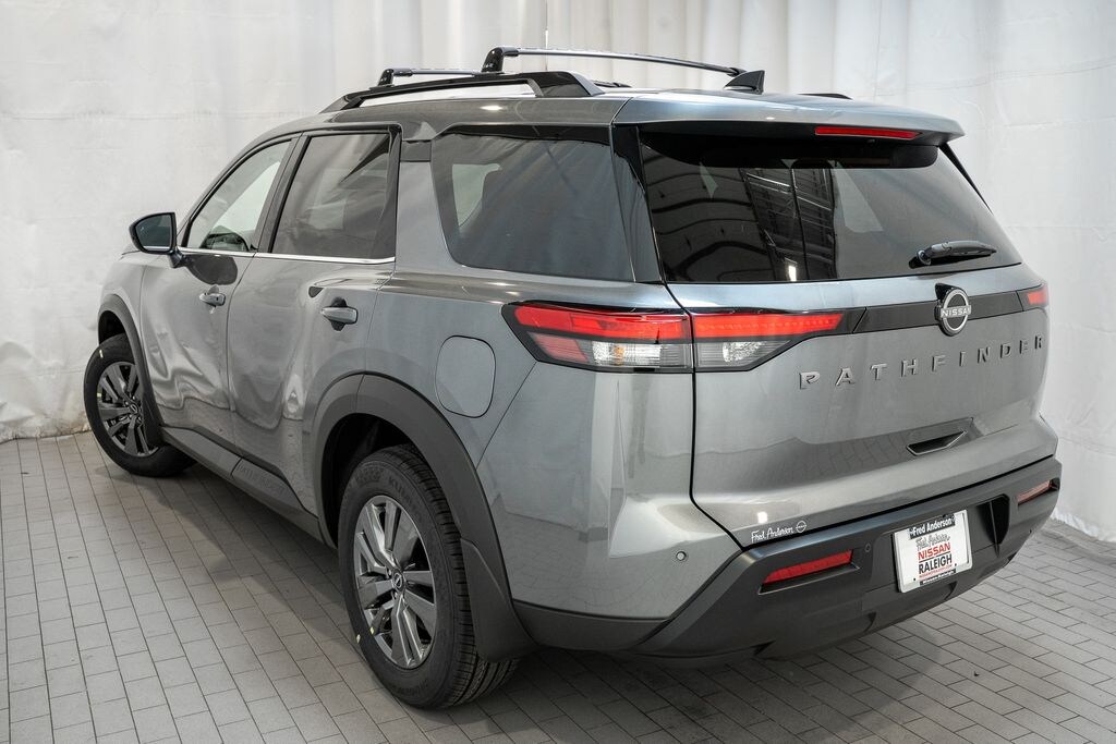 Located At The New Fred Anderson Nissan Of Raleigh On Glenwood Avenue! Right Next To The Angus Barn! $4,250 off MSRP! Priced below KBB Fair Purchase Price! Every new Nissan comes with The Family Plan including a 3 day Peace Of Mind Exchange Option, Lifetime Oil Changes, Loaner Cars, Loyalty Discounts and more with no additional charge at Fred Anderson Nissan of Raleigh. Check out all these great options 18" Painted Alloy Wheels, 3rd row seats: bench, 4-Piece Black Splash Guards, 4-Wheel Disc Brakes, 6 Speakers, ABS brakes, Air Conditioning, Alloy wheels, AM/FM radio: SiriusXM w/360L, Auto High-beam Headlights, Automatic temperature control, Bench Seat Carpeted Floor Mats, Brake assist, Bumpers: body-color, Cloth Seating Surfaces, Cross Bars, Delay-off headlights, Driver door bin, Driver vanity mirror, Dual front impact airbags, Dual front side impact airbags, Electronic Stability Control, Emergency communication system: NissanConnect Services, Four wheel independent suspension, Front anti-roll bar, Front Bucket Seats, Front Center Armrest, Front dual zone A/C, Front reading lights, Fully automatic headlights, Garage door transmitter: myQ Connected Garage, Heated door mirrors, Heated Front Bucket Seats, Heated front seats, Illuminated entry, Knee airbag, Low tire pressure warning, NissanConnect featuring Apple CarPlay and Android Auto, Occupant sensing airbag, Outside temperature display, Overhead airbag, Overhead console, Panic alarm, Passenger door bin, Passenger vanity mirror, Power door mirrors, Power driver seat, Power Liftgate, Power steering, Power windows, Radio data system, Radio: AM/FM Audio System with NissanConnect, Rear air conditioning, Rear anti-roll bar, Rear reading lights, Rear seat center armrest, Rear side impact airbag, Rear window defroster, Rear window wiper, Reclining 3rd row seat, Remote keyless entry, Security system, Speed control, Speed-sensing steering, Split folding rear seat, Spoiler, Steering wheel mounted audio controls, Tachometer, Telescoping steering wheel, Tilt steering wheel, Traction control, Trip computer, and Variably intermittent wipers. 2026 4D Sport Utility Nissan Pathfinder Gun Metallic SV FWD 9-Speed Automatic 3.5L V6 DOHC