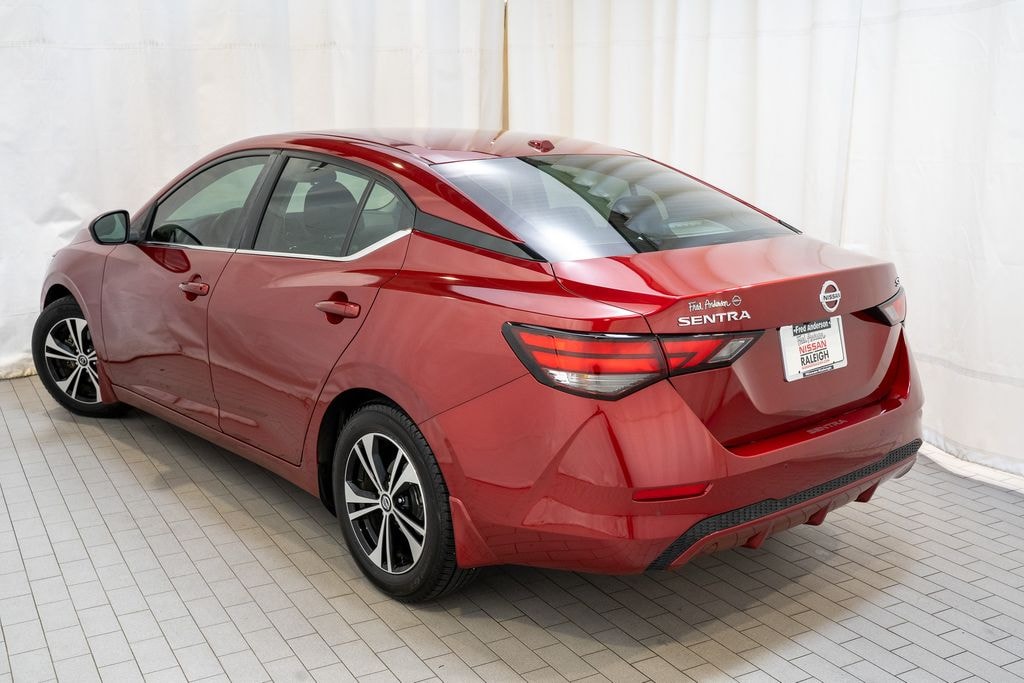 Check out all these great options 16" Alloy Wheels, 4-Wheel Disc Brakes, 6 Speakers, ABS brakes, Air Conditioning, Alloy wheels, AM/FM radio: SiriusXM, Auto High-beam Headlights, Automatic temperature control, Blind Spot Warning, Body Colored Splash Guards (4-Piece), Brake assist, Bumpers: body-color, Carpeted Floor Mats w/Trunk Mat, Clear Rear Bumper Protector, Delay-off headlights, Door Sill Plates, Driver door bin, Driver vanity mirror, Dual front impact airbags, Dual front side impact airbags, Electronic Stability Control, Four wheel independent suspension, Front anti-roll bar, Front Bucket Seats, Front Center Armrest, Front dual zone A/C, Front reading lights, Fully automatic headlights, Heated door mirrors, Illuminated entry, Knee airbag, Low tire pressure warning, NissanConnect featuring Apple CarPlay and Android Auto, Occupant sensing airbag, Outside temperature display, Overhead airbag, Overhead console, Panic alarm, Passenger door bin, Passenger vanity mirror, Power door mirrors, Power steering, Power windows, Radio data system, Radio: AM/FM w/RDS/MP3/Aux-In, Rear anti-roll bar, Rear Parking Sensors, Rear seat center armrest, Rear side impact airbag, Rear window defroster, Remote keyless entry, Security system, Speed control, Speed-sensing steering, Split folding rear seat, Steering wheel mounted audio controls, Tachometer, Telescoping steering wheel, Tilt steering wheel, Traction control, Trip computer, Upgraded Cloth Seat Trim, and Variably intermittent wipers *** AVAILABLE AT FRED ANDERSON NISSAN OF RALEIGH. CALL US NOW 919-787-0254*** Nissan Sentra Scarlet Ember Tintcoat SV FWD CVT with Xtronic 2.0L DOHC